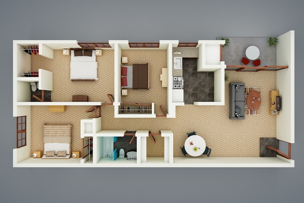 3 Beds, 1.5 Baths, 1225 sq ftModel Gallery