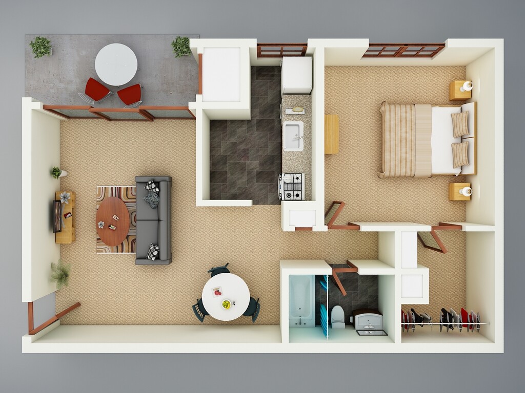 1 Bed, 1 Bath, 825 sq ftModel Gallery