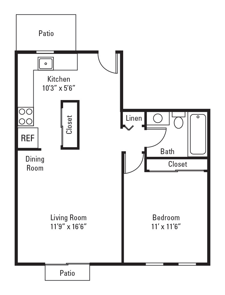 Apartment Model: One Bedroom- 560 sqftFrom $1,4851 Bedroom, 1 Bath, 560 sq ftAvailable Now![]()