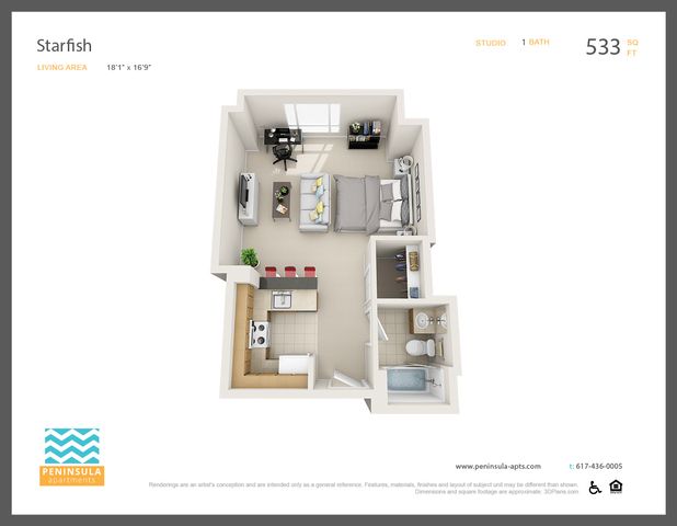 Apartment Model: StarfishFrom $2,484Studio, 1 Bath, 525 sq ftAvailable January 20, 2026![]()