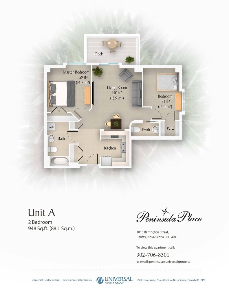 Peninsula Place offers a location like no other apartment community in Halifax, bringing the best our city has to offer to your front door. Providing everything needed for work-life balance with its close proximity to the core business district and lively downtown Halifax.Choose from one, two, or three-bedroom apartments with magnificent Halifax Harbour and cityscape views. Including 5 appliances, in-suite laundry, underground and outdoor parking and plenty of green space.Enjoy leisurely strolls to the Halifax Seaport Farmers Market, Halifax boardwalk or Point Pleasant Park. Also within walking distance to Sobeys, Superstore, Tim Hortons as well as countless bars, restaurants and shops.