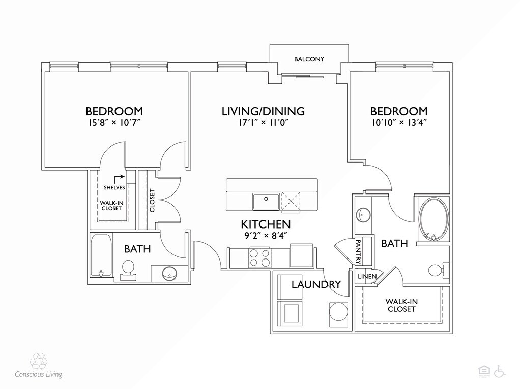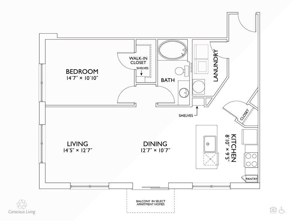 A8 - Floorplan 1 Apartment Unit: 3-212Apartment Model: A81 Bedroom, 1 Bath, 927 sq ftAvailable NowFloorplan A4