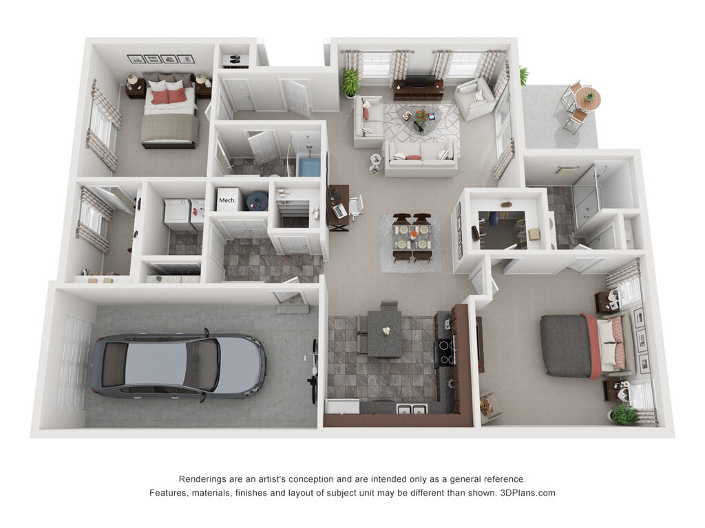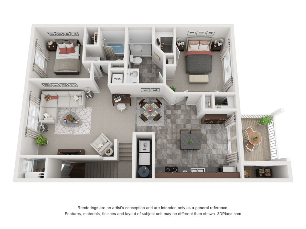 3 Beds, 2.5 Baths, 1614 sq ftLargest 3 BedroomThis is the largest 3 Bedroom at this PropertyModel Gallery