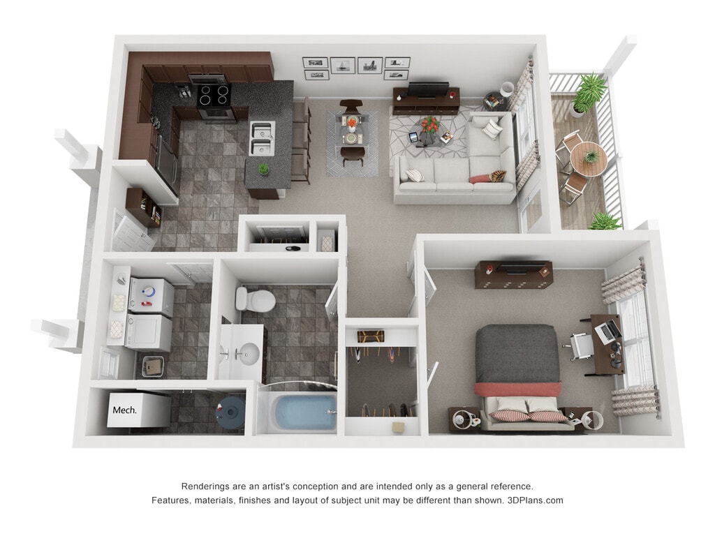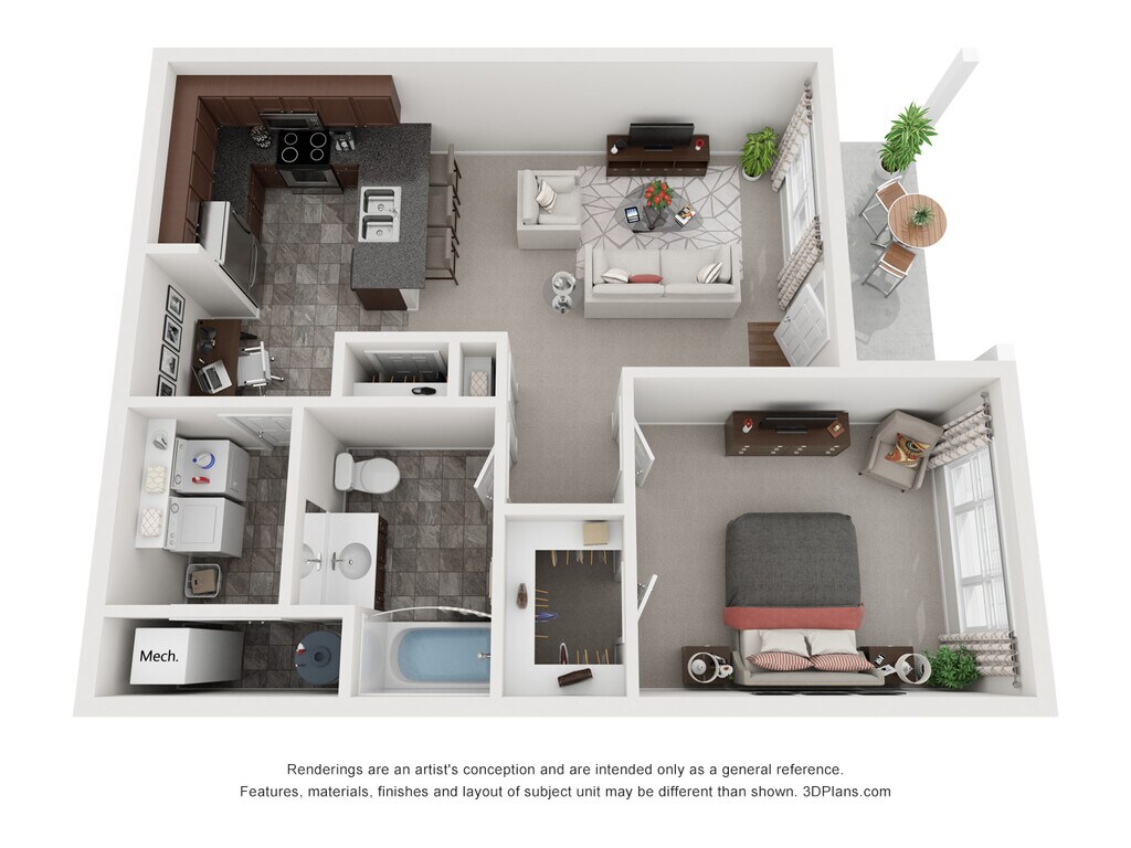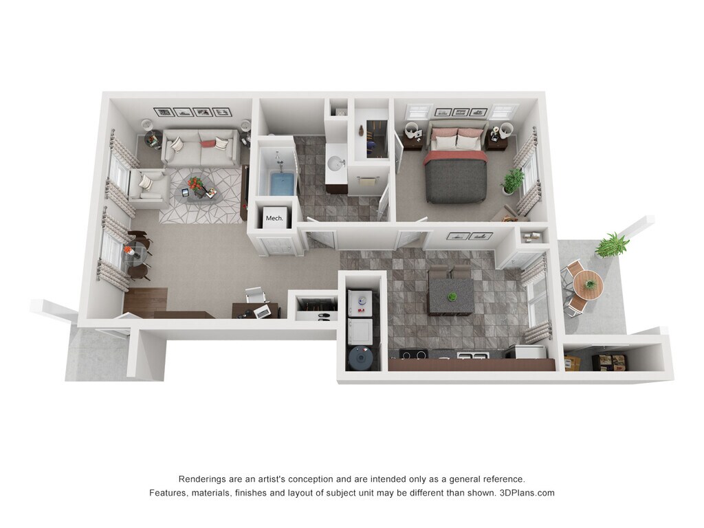 1 Bed, 1 Bath, 803 sq ftModel Gallery