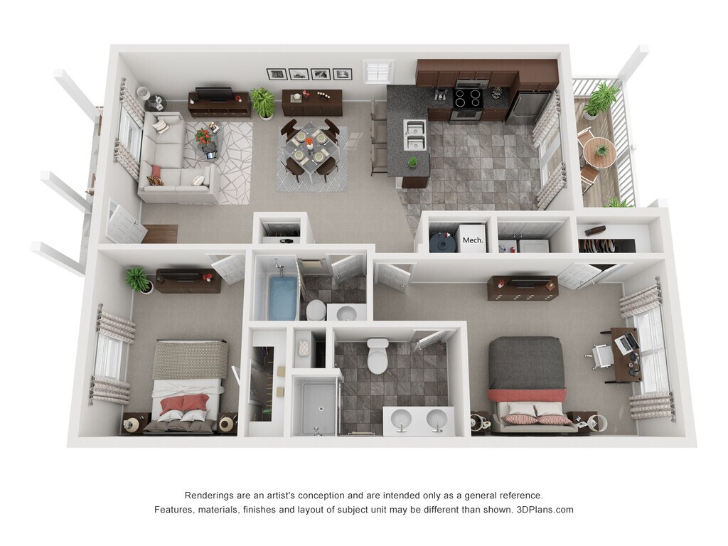 2 Beds, 2 Baths, 1183 sq ftModel Gallery