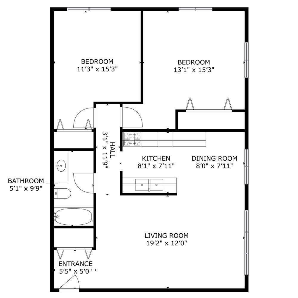 Apartment Model: 2x1From $1,6002 Bedroom, 1 Bath, 1000 sq ftAvailable Now2x1 - Floorplan 1 3 Bedrooms