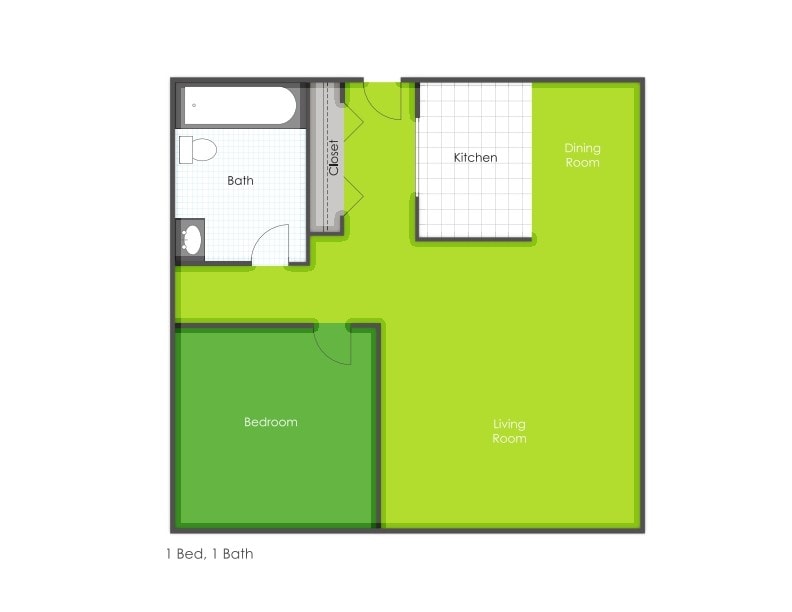 One Bedroom One Bath - Floorplan 1 2 Bedrooms