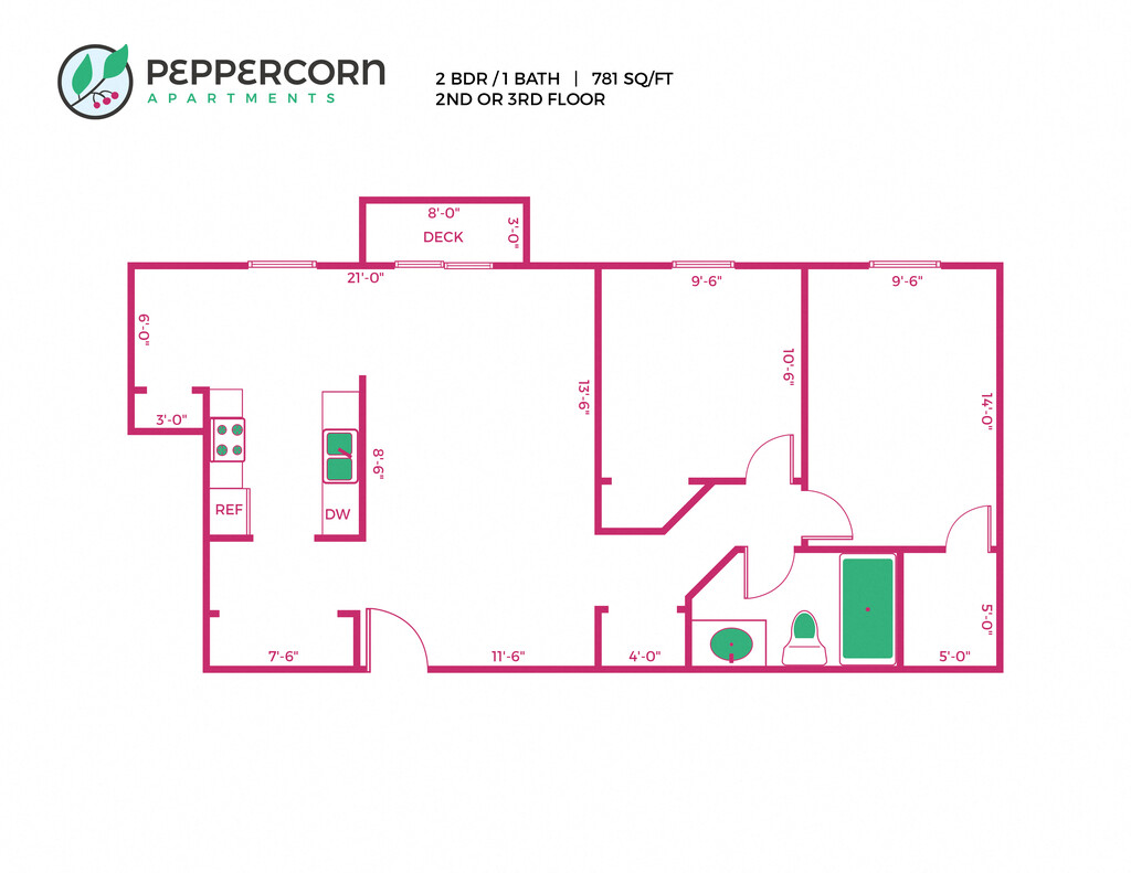 Apartment Model: 2 Bed, 1 Bath - 781 sq ftFrom $1,1952 Bedroom, 1 Bath, 781 sq ftAvailable Now2 Bed, 1 Bath - 781 sq ft - Floorplan 1 2 Bed, 1 Bath - 700 sq ft