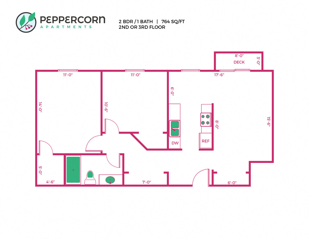 Apartment Model: 2 Bed, 1 Bath - 764 sq ftFrom $1,1802 Bedroom, 1 Bath, 764 sq ftAvailable Now2 Bed, 1 Bath - 764 sq ft - Floorplan 1 2 Bed, 1 Bath - 781 sq ft
