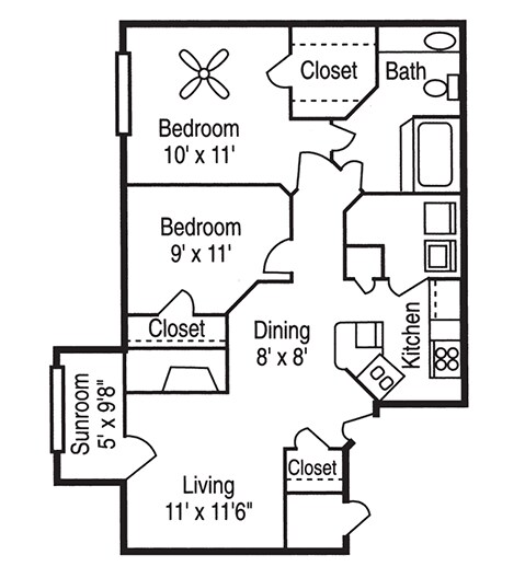 Apartment Model: The Spruce (Sunroom)2 Bedroom, 1 Bath, 838 sq ftUnavailable![]()