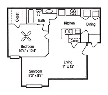 Apartment Model: The Spruce2 Bedroom, 1 Bath, 786 sq ftUnavailableThe Spruce - Floorplan 1 The Spruce (Sunroom)