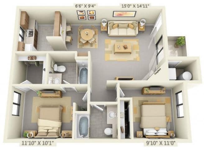 Apartment Model: Two Bedroom2 Bedroom, 2 Bath, 859 sq ftAvailable NowFloorplansPhotos![]()