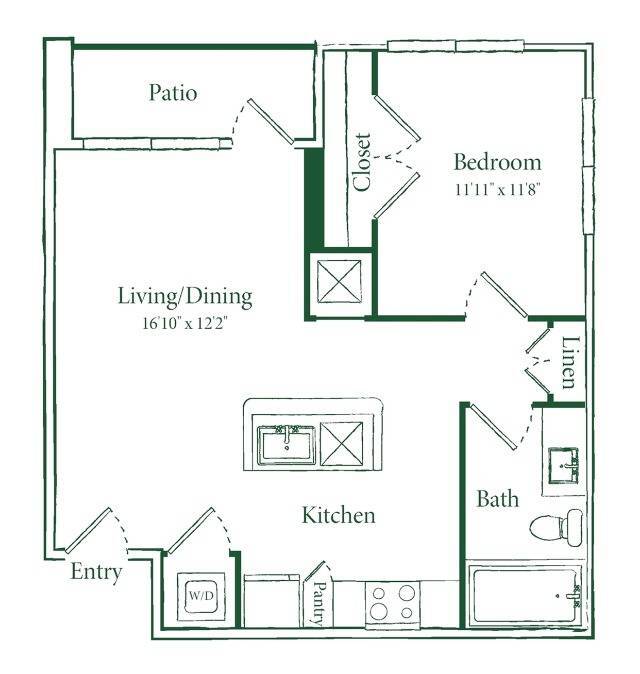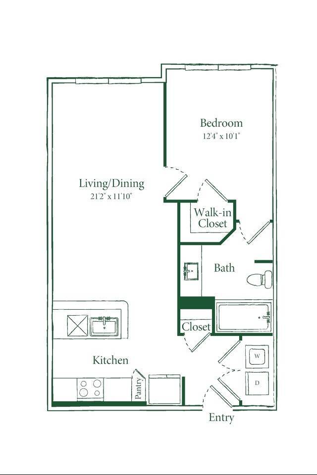 Apartment Model: A2D$1,2991 Bedroom, 1 Bath, 642 sq ftAvailable NowFloor plans are artist's rendering. All dimensions are approximate. Actual product and specifications may vary in dimension or detail. Not all features are available in every rental home. Prices and availability are subject to change. Base rent is based on monthly frequency. Additional fees may apply, such as but not limited to package delivery, trash, water, amenities, etc. Deposits vary. Please see a representative for details.