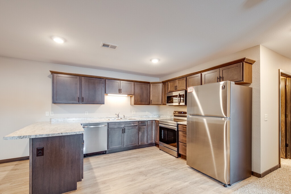 Peregrine Terrace in River Falls, WI is currently leasing modern apartments that were built in 2021. These apartments offer a private view from your patio or balcony and provide convenient living with east access to major routes like WI-35 and WI-65, as well as close proximity to UW- River Falls and nearby nature trails. These apartments feature contemporary open - concept designs with stainless steel appliances, private patios/balconies, fireplaces, and either an attached 1 or 2 car garage, catering to a comfortable lifestyle. Residents of Peregrine Terrace have the added benefit of receiving a complimentary membership to the UW- River Falls Falcon Center. If the membership is utilized 12 times or more per month, the monthly membership cost will be reimbursed through rent. Furthermore, all buildings in this community are pet-friendly, and lawn care and snow removal services are included for convenience. Unit Types: 1 Bedroom, 1 Bathroom 2 Bedroom, 1 Bathroom 2 Bedroom, 2 Bathroom 3 Bedroom, 2 Bathroom If you're interested in an apartment at Peregrine Terrace, you can find available units and more information on our website!