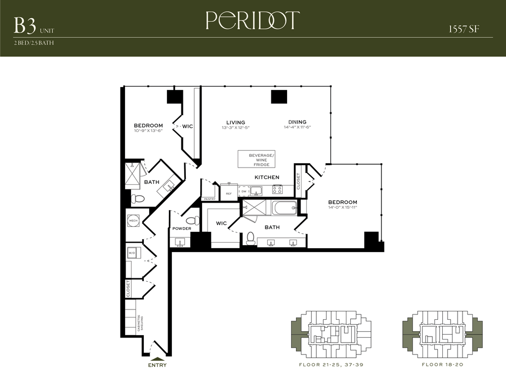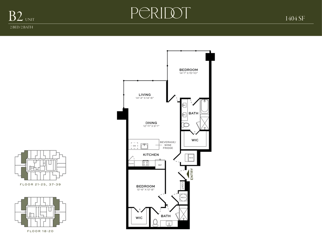 Peridot Residences offers 1 to 2 Bedroom apartments starting from $1,997 and having 607–1,557 sq ft. Here is the current pricing and availability: