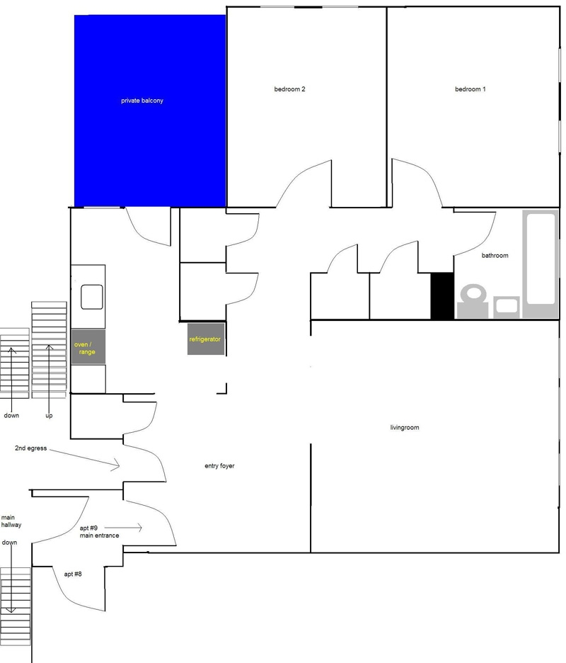 2 Beds, 1 bath - Floorplan 1 3 Bedrooms