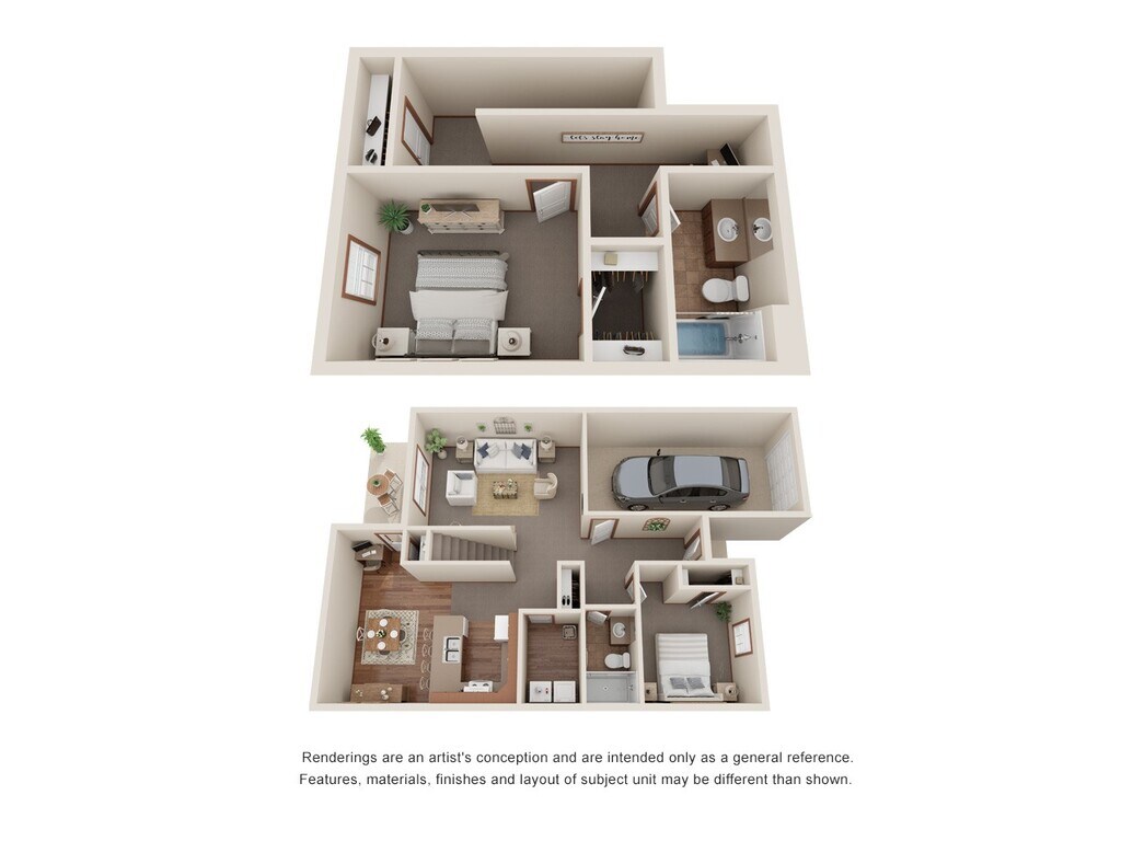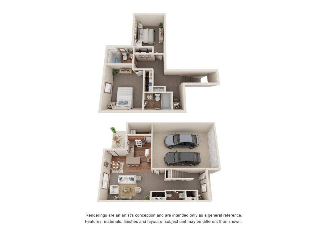 Apartment Model: 2 Bed | 2.5 Bath 2-StoryFrom $1,8252 Bedroom, 2.5 Bath, 1400 sq ftAvailable Now![]()