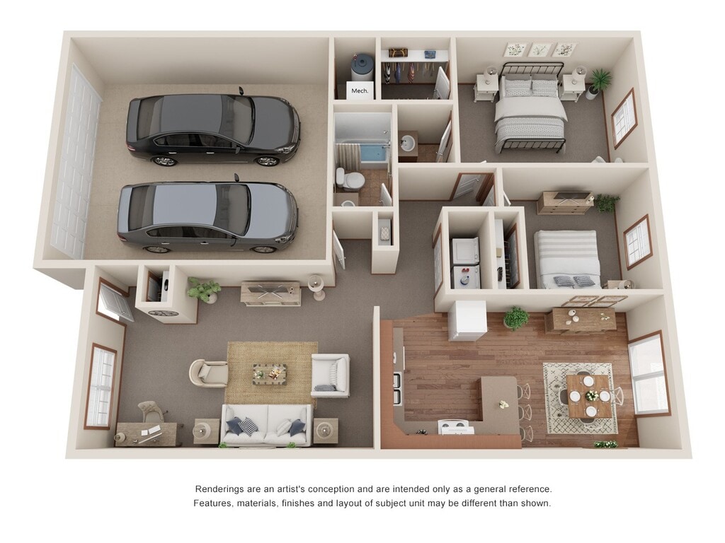 2 Beds, 2.5 Baths, 1400 sq ftAvailable NowLargest 2 BedroomThis is the largest 2 Bedroom at this PropertyModel Gallery