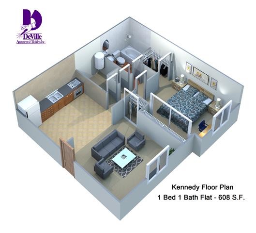 Apartment Model: KennedyFrom $7751 Bedroom, 1 Bath, 608 sq ftUnavailable![]()