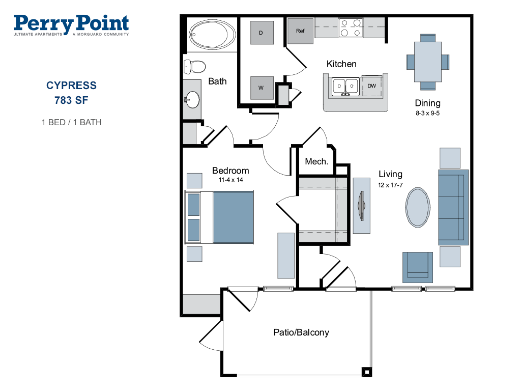 Perry Point offers 1 to 2 Bedroom apartments starting from $1,166 and having 716–1,157 sq ft. Here is the current pricing and availability: