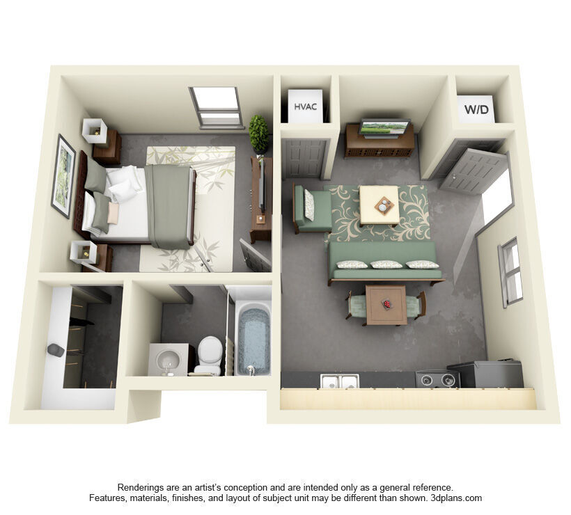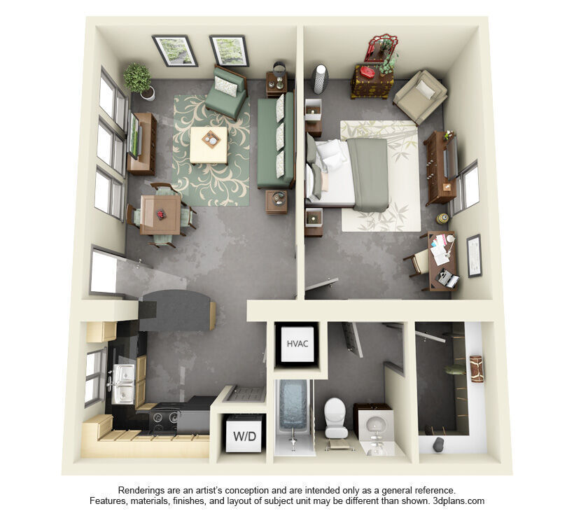 1 Bed, 1 Bath, 475 sq ftModel Gallery