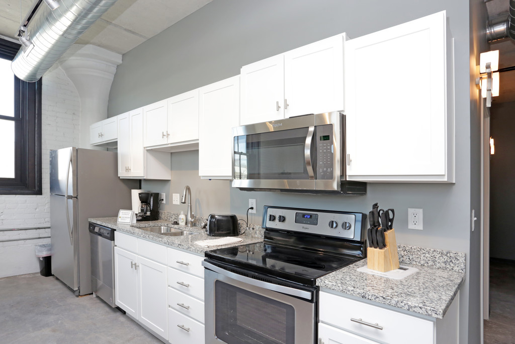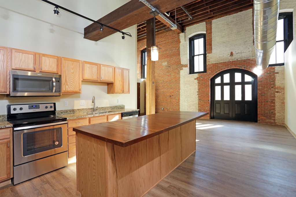 Downtown Davenport’s Premier Luxury Lofts Perfectly situated in the heart of downtown Davenport, Pershing Hill Lofts brings you the ideal blend of historical charm and modern convenience. Come home to comfort and efficiency with inspired design in every detail of our studio, one-bedroom, two-bedroom, and three-bedroom luxury lofts with impeccable features and all of the elegant touches you deserve. Expansive kitchens flow seamlessly into spacious living areas and exhibit a variety of features including large reclaimed wood kitchen islands, exposed brick and spiral duct work, stainless steel appliances, and more. Classic elements transform your space from a loft to a home, and other important conveniences like large closets, in-loft laundry equipment, and central air allow you to find a space that’s just right for you.