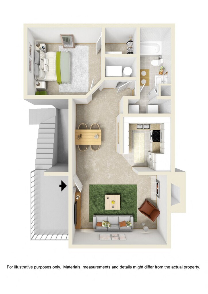 Apartment Model: Small 1 Bed$8591 Bedroom, 1 Bath, 550 sq ftUnavailableFloorplansPhotos![]()