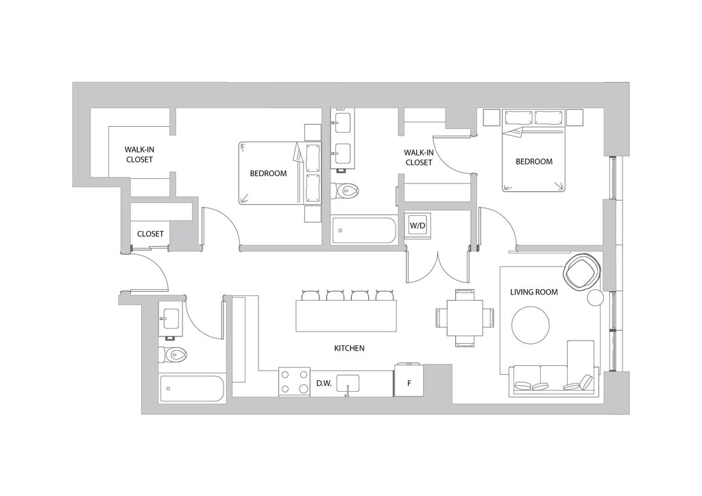 Apartment Model: Type F2$2,4002 Bedroom, 2 Bath, 918 sq ftAvailable NowFloorplansPhotos![]()
