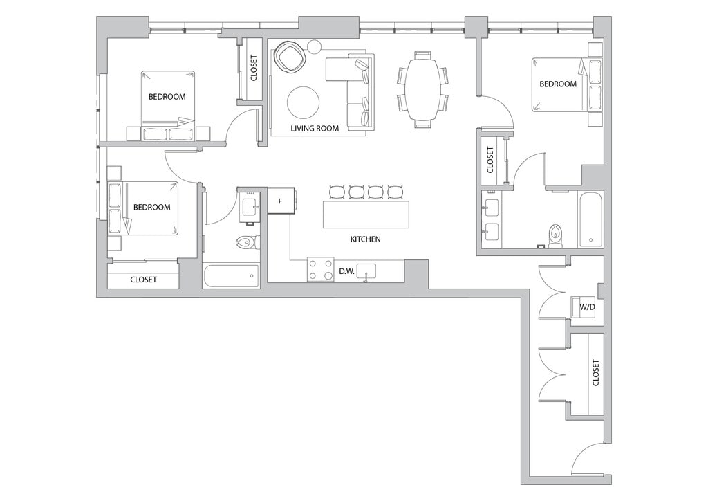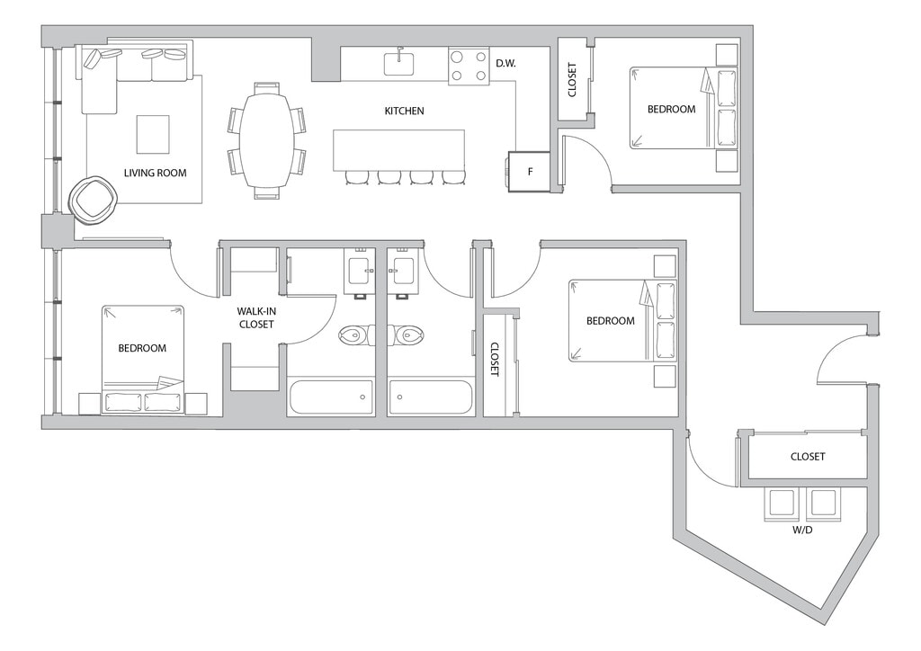 Type F2 - Floorplan 12 Apartment Unit: 502Apartment Model: Type F2$2,4002 Bedroom, 2 Bath, 918 sq ftAvailable NowType K (Penthouse)