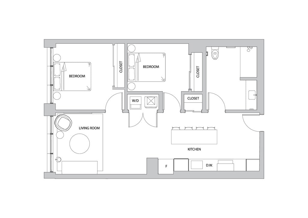 Apartment Model: Type F2$2,4002 Bedroom, 2 Bath, 918 sq ftAvailable NowFloorplansPhotosVideos![]()