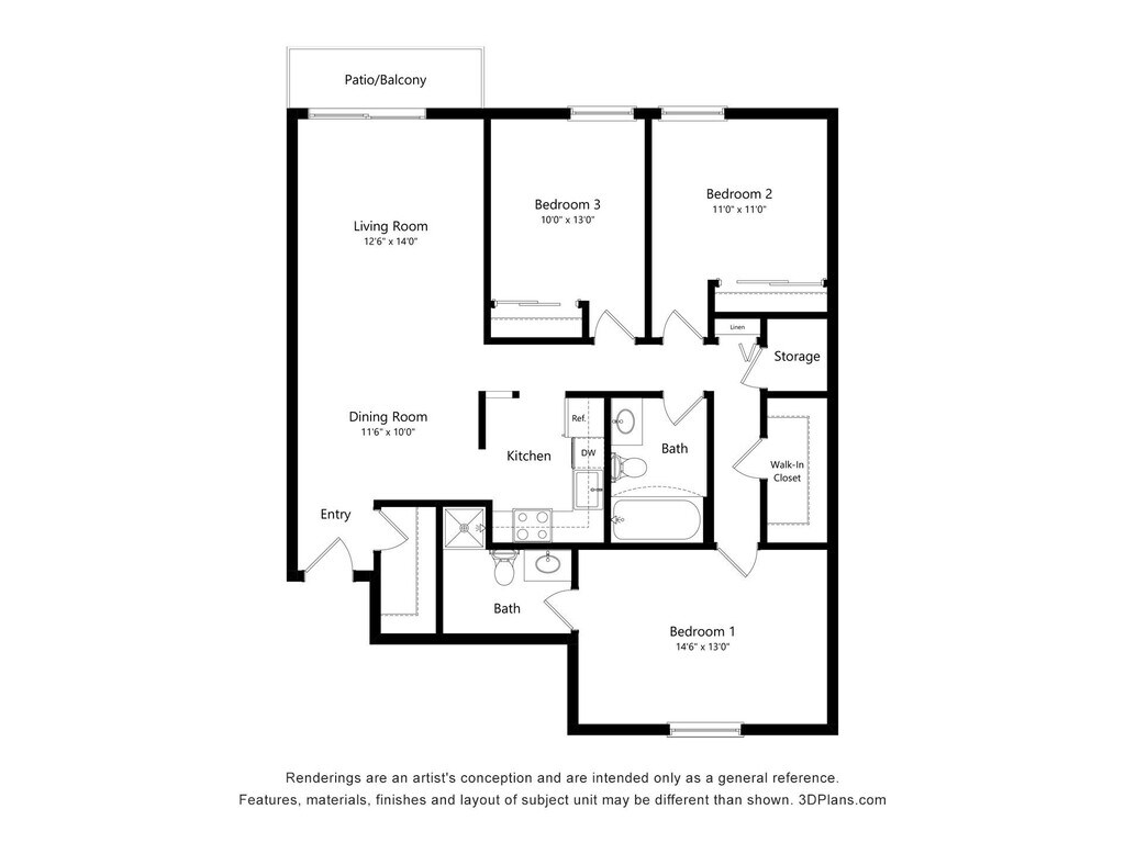 3 Bedroom - Floorplan 3 Apartment Unit: 324Apartment Model: 3 Bedroom$1,8853 Bedroom, 1.5 Bath, 1250 sq ftAvailable November 27, 2025