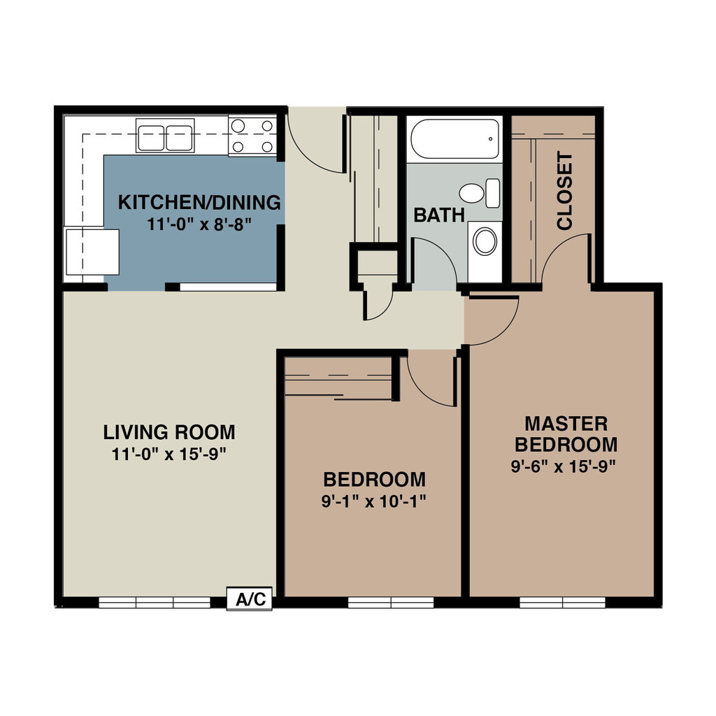 Apartment Model: 2 Bedroom - N/A2 Bedroom, 1 Bath, 870 sq ftUnavailable![]()