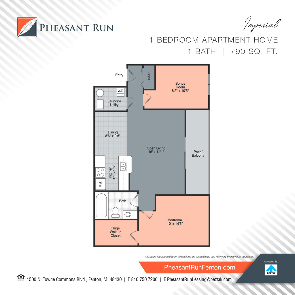Apartment Model: ImperialCall For Rates1 Bedroom, 1 Bath, 790 sq ftUnavailableImperial - Floorplan 1 2 Bedrooms