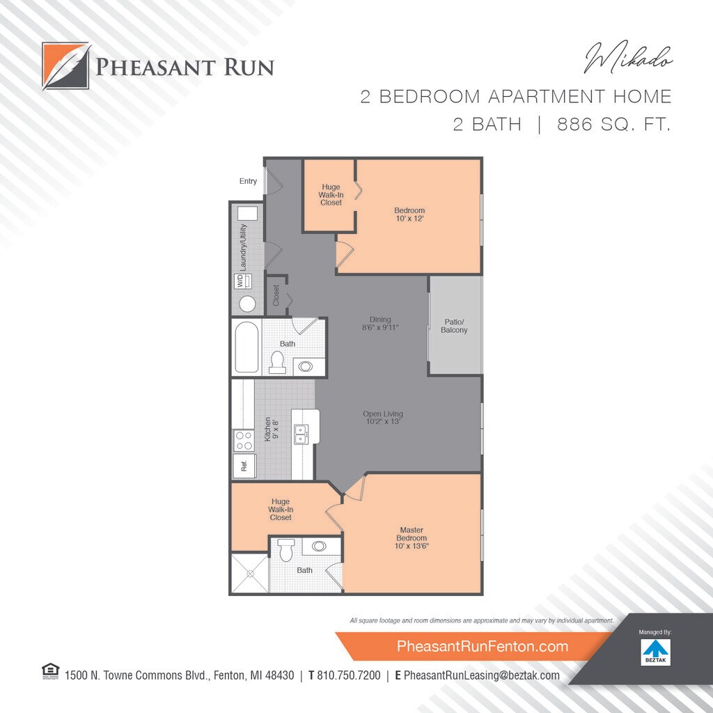 Pheasant Run offers 1 to 2 Bedroom apartments starting from $1,160 and having 790–890 sq ft. Here is the current pricing and availability: