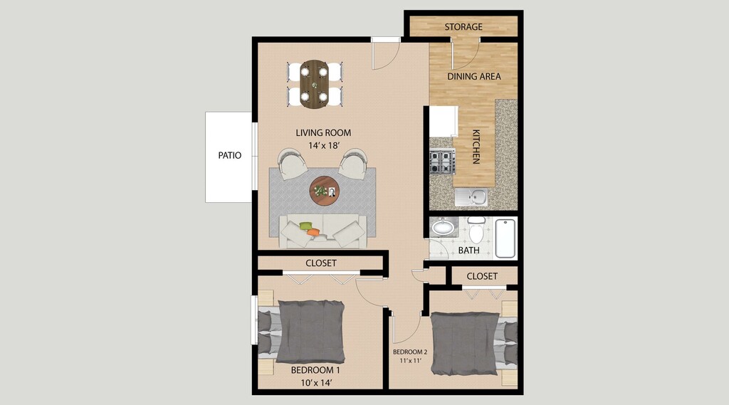 2 Beds, 1 Bath, 860 sq ftAvailable Dec 12Model Gallery