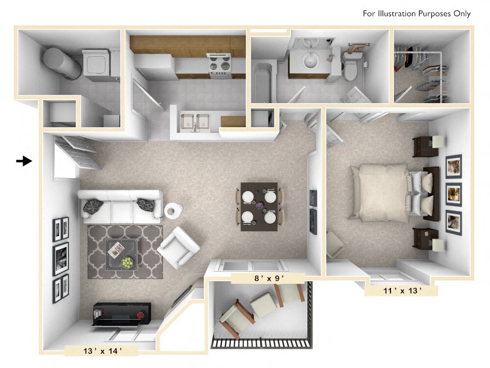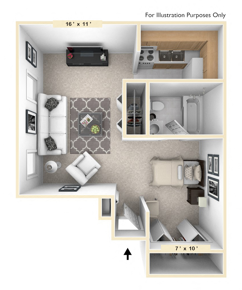 1 Bed, 1 Bath, 546 sq ftAvailable NowModel Gallery