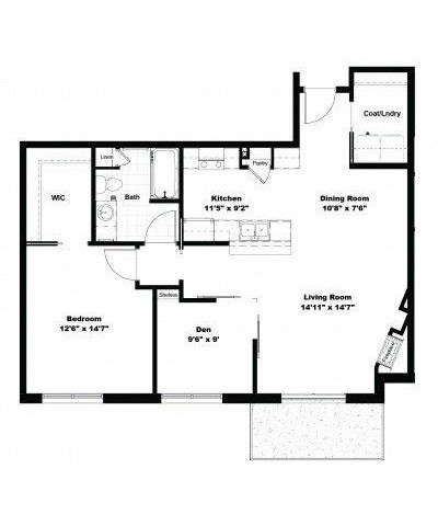 1 Bedroom 1 Bathroom with Den - Floorplan 1 2 Bedrooms
