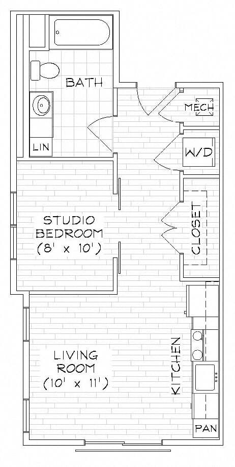 Apartment Model: A8Call For RatesStudio, 1 Bath, 351 sq ftUnavailableA8 - Floorplan 1 1 Bedroom