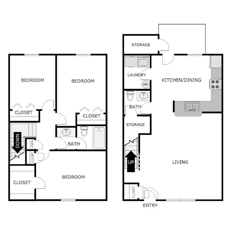 Apartment Model: 3 bedroom 1.5 Bathrooms3 Bedroom, 1.5 Bath, 1238 sq ftUnavailable3 bedroom 1.5 Bathrooms - Floorplan 1