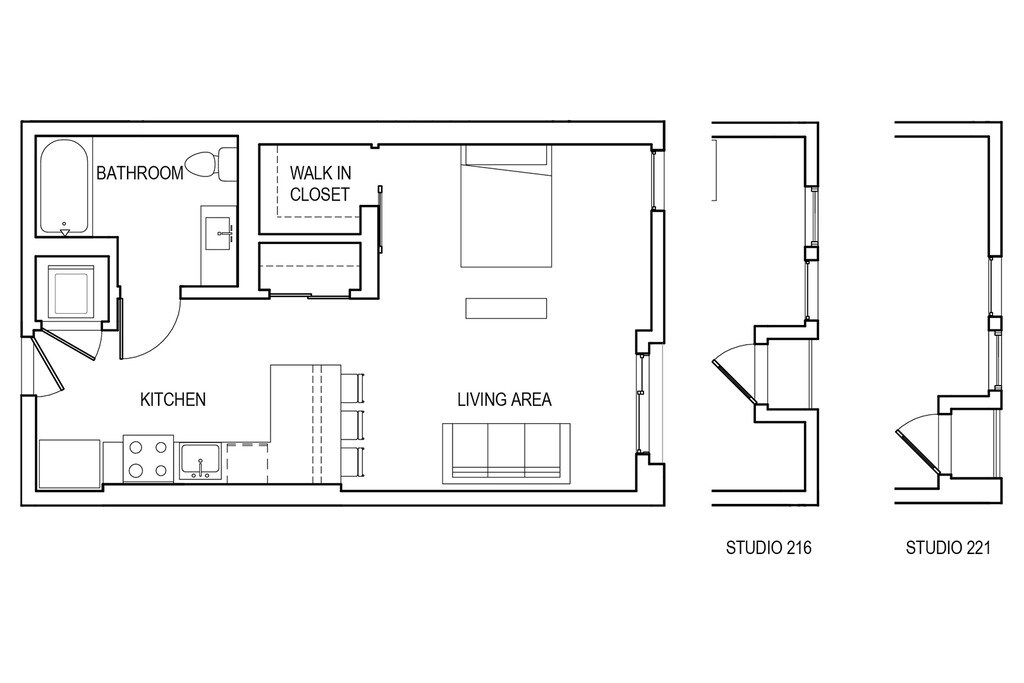 SC - Floorplan 1 Apartment Unit: 221Apartment Model: SC$3,355Studio, 1 Bath, 569 sq ftAvailable Now1 Bedroom
