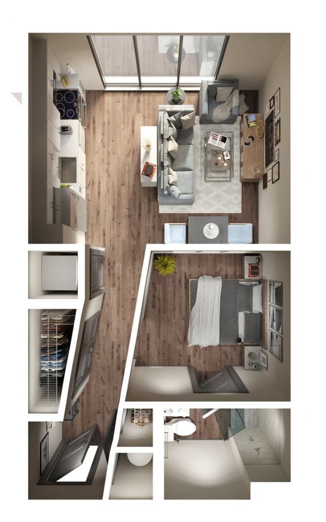 Studio, 1 Bath, 582 sq ftAvailable NowModel Gallery