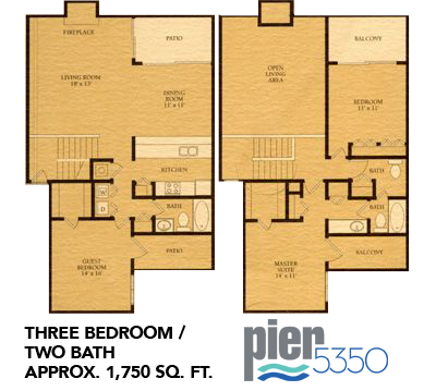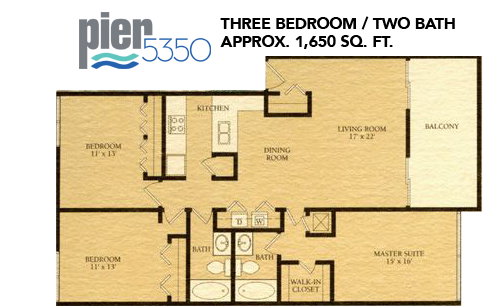 Pier 5350 offers Studio to 3 Bedroom apartments starting from $1,049 and having 625–1,750 sq ft. Here is the current pricing and availability: