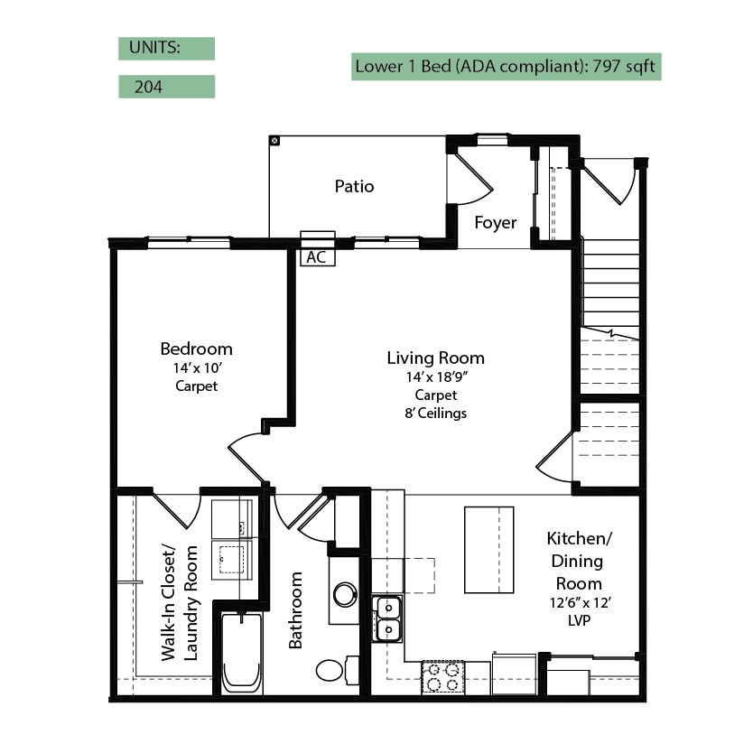 One Bedroom Lower - Floorplan 4 One Bedroom Upper