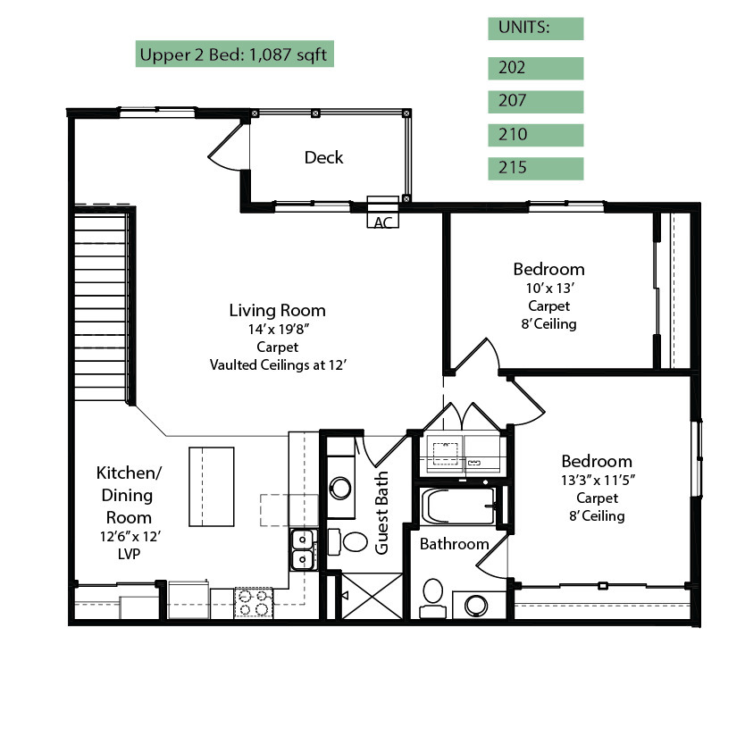 One Bedroom Upper - Floorplan 12 2 Bedrooms