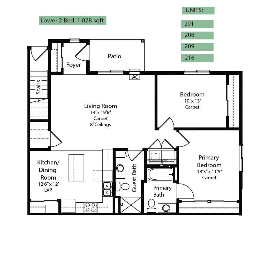 Two Bedroom Lower - Floorplan 7 Two Bedroom Upper