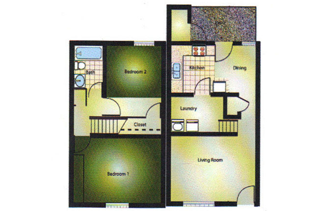 Apartment Model: 2 Bedroom Flat2 Bedroom, 1 Bath, 808 sq ftUnavailable2 Bedroom Flat - Floorplan 1 2 Bed Townhouse