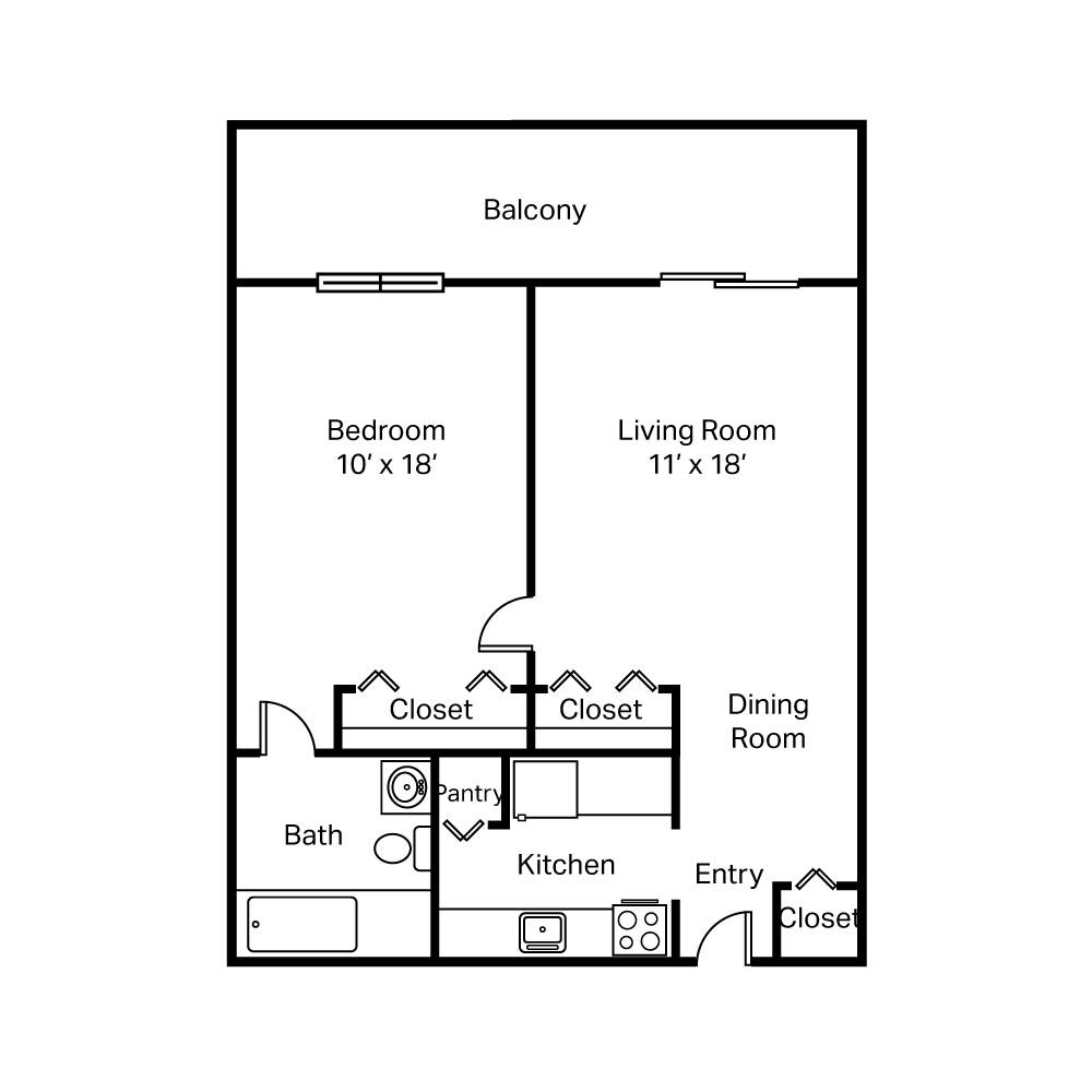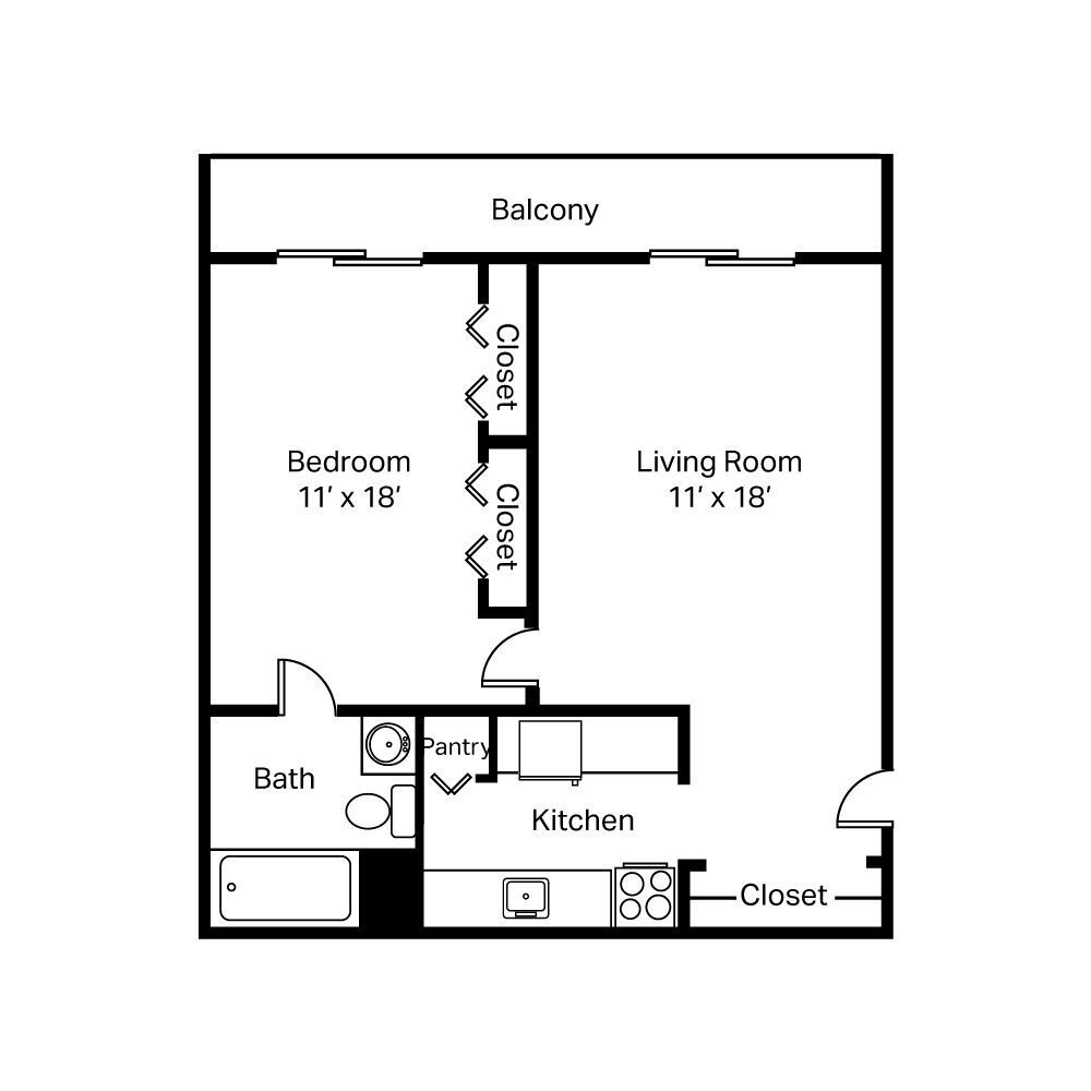Income-Based 1 Bedroom - Floorplan 1 ![]()