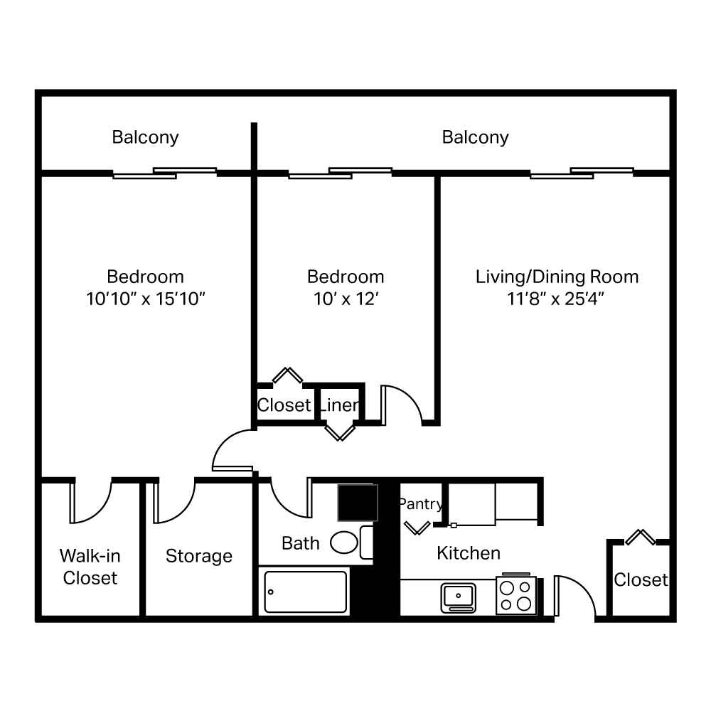Income-Based 1 Bedroom End Unit - Floorplan 1 2 Bedrooms