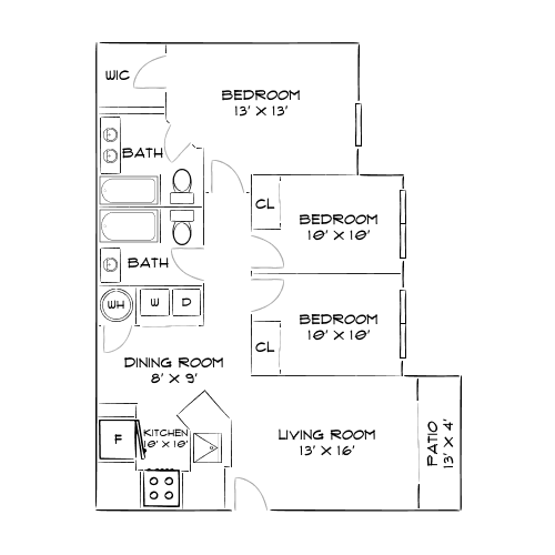 3 Beds, 2 Baths, 1259 sq ftAvailable NowModel Gallery