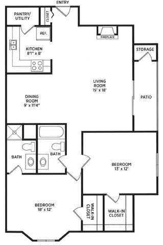 2 Bed 2 Bath - Floorplan 1 ![]()